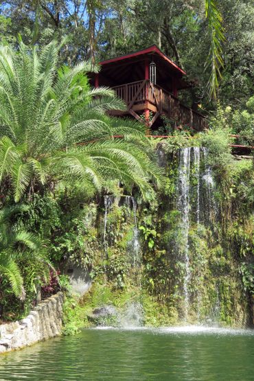 The restroom - the tire is the wash basin and the faucet is an old gas pump handle!